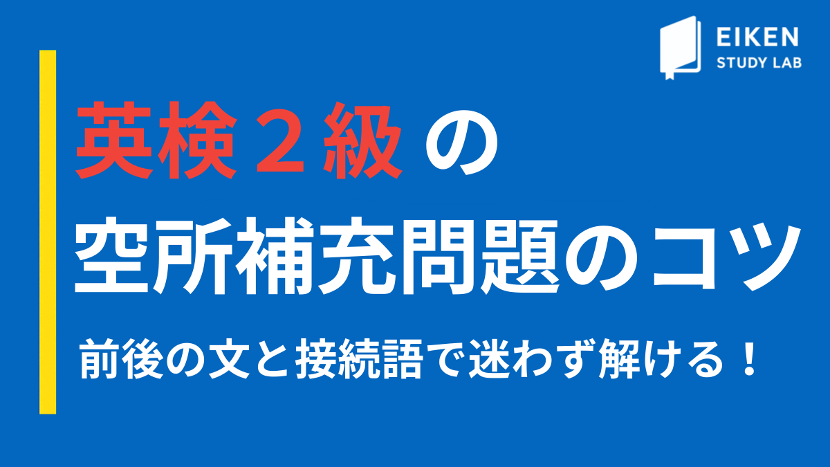 英検2級の大問2で出てくる空所補充問題の解き方について書いています。
